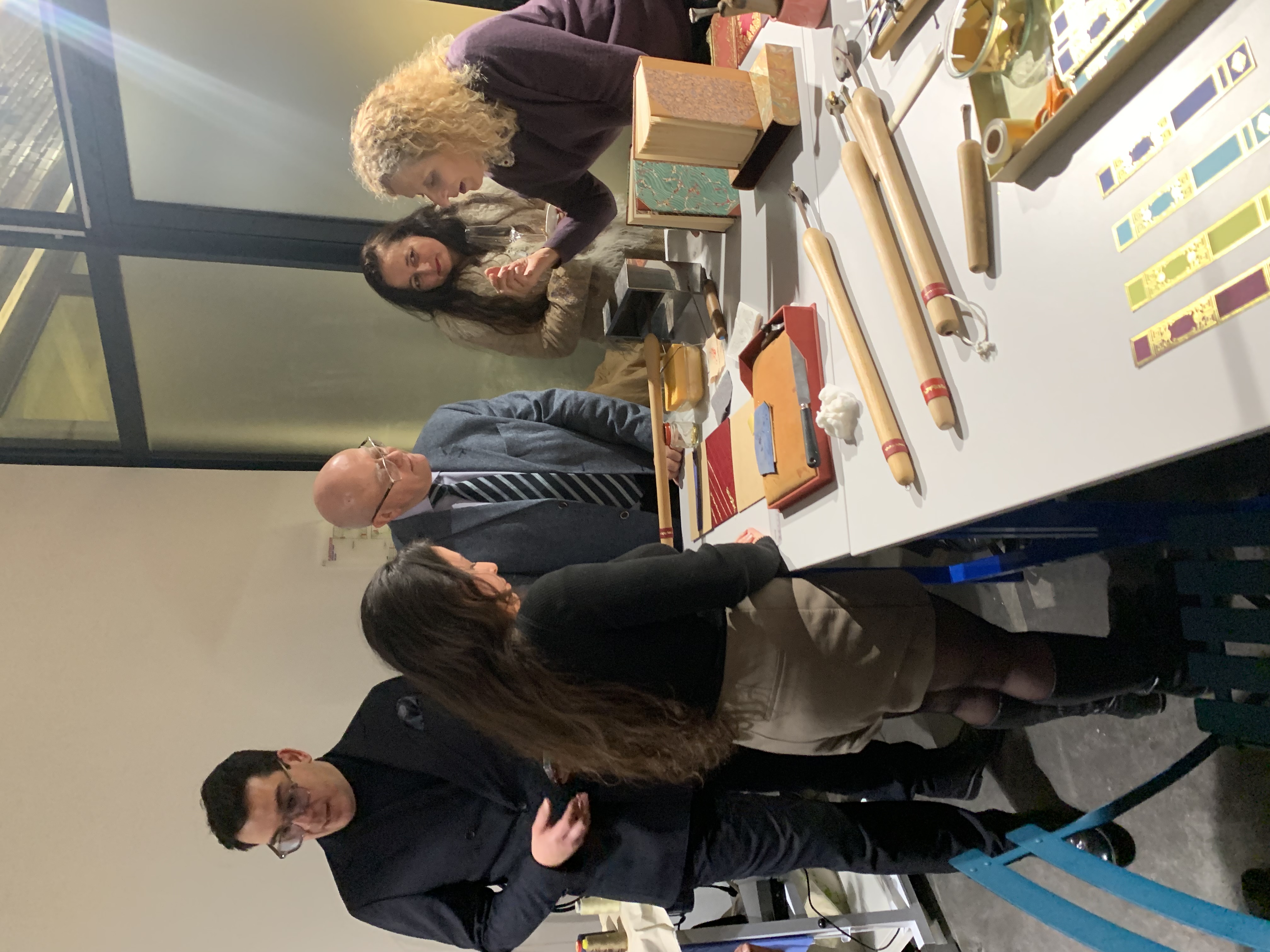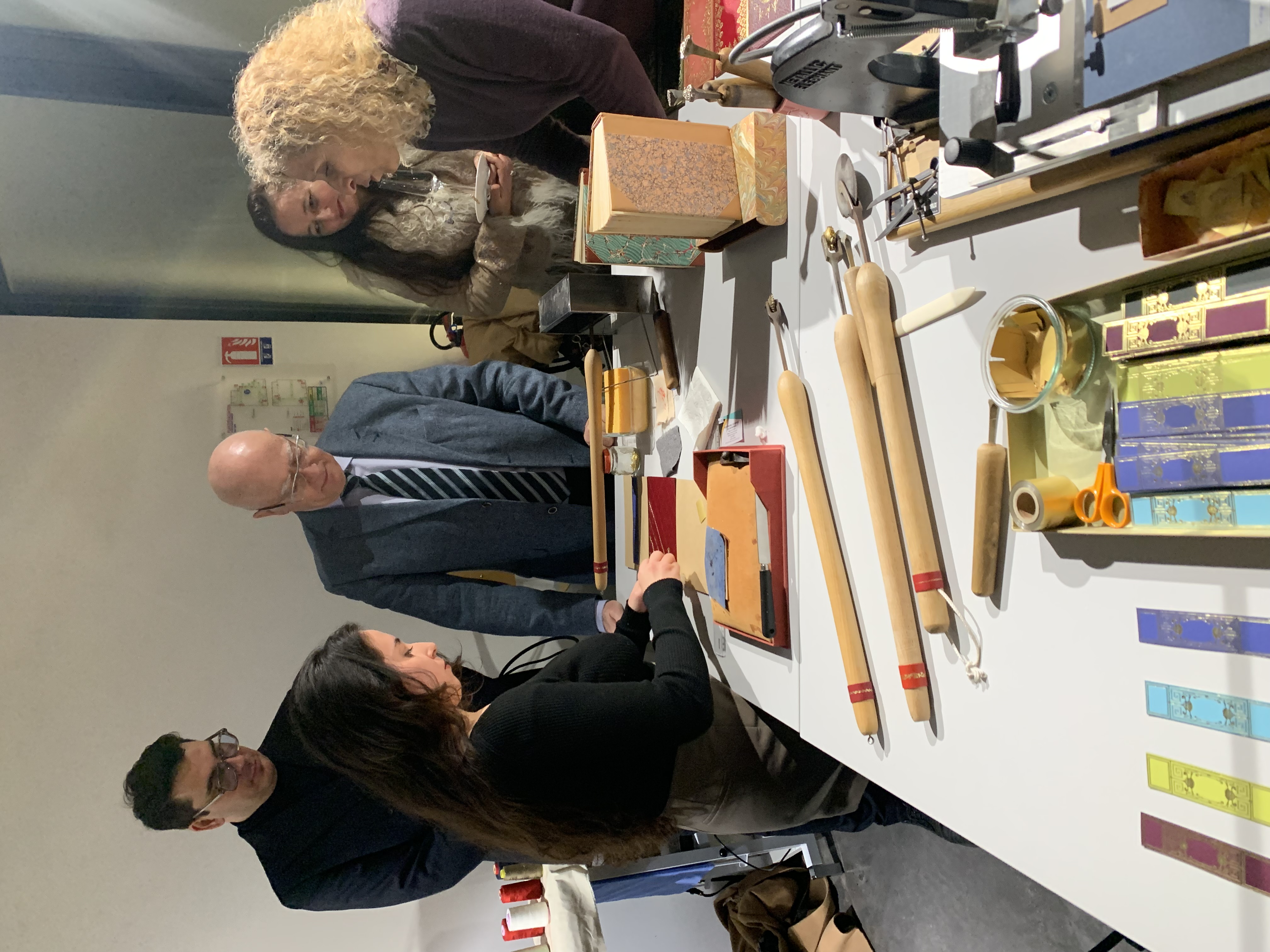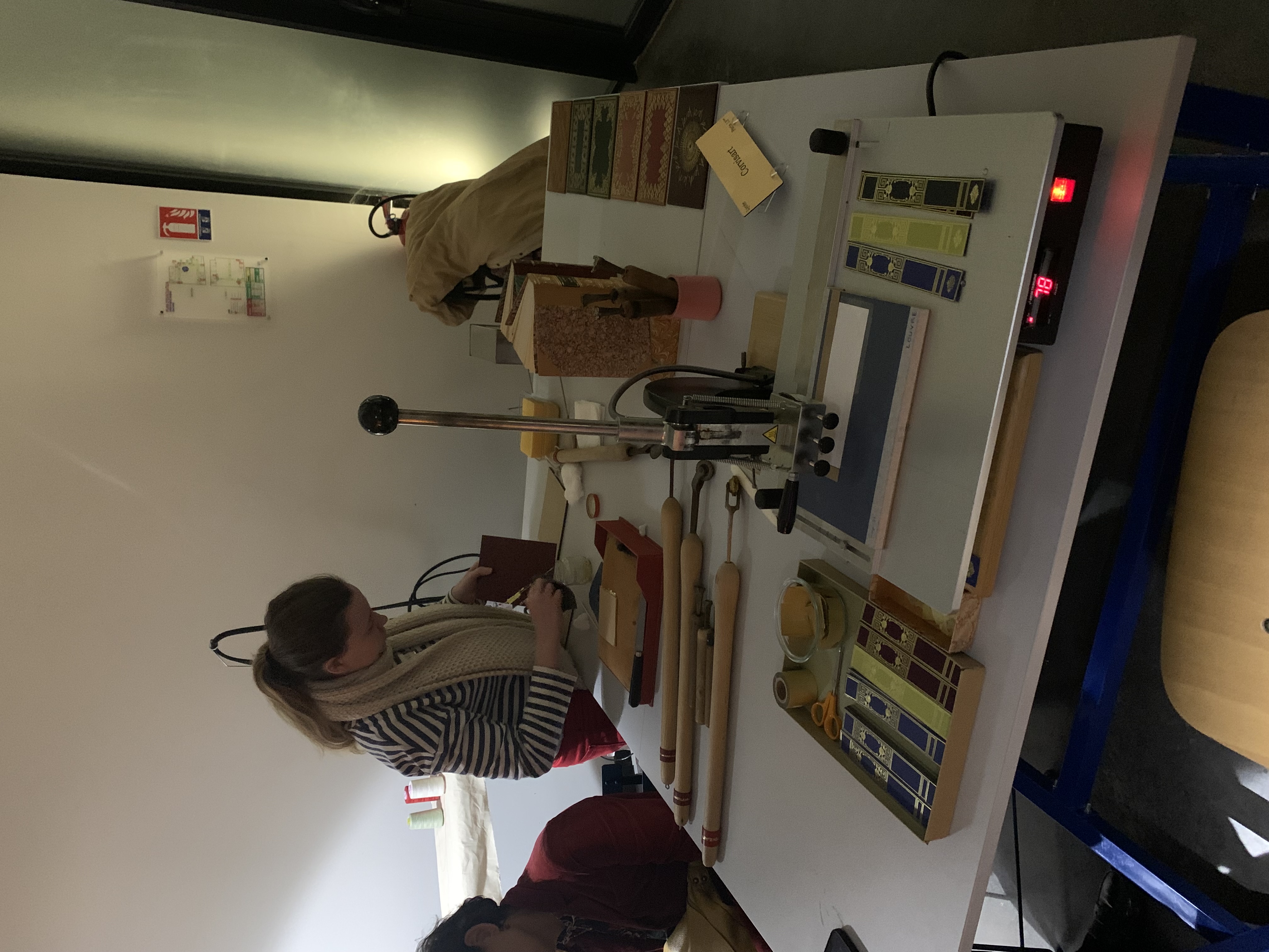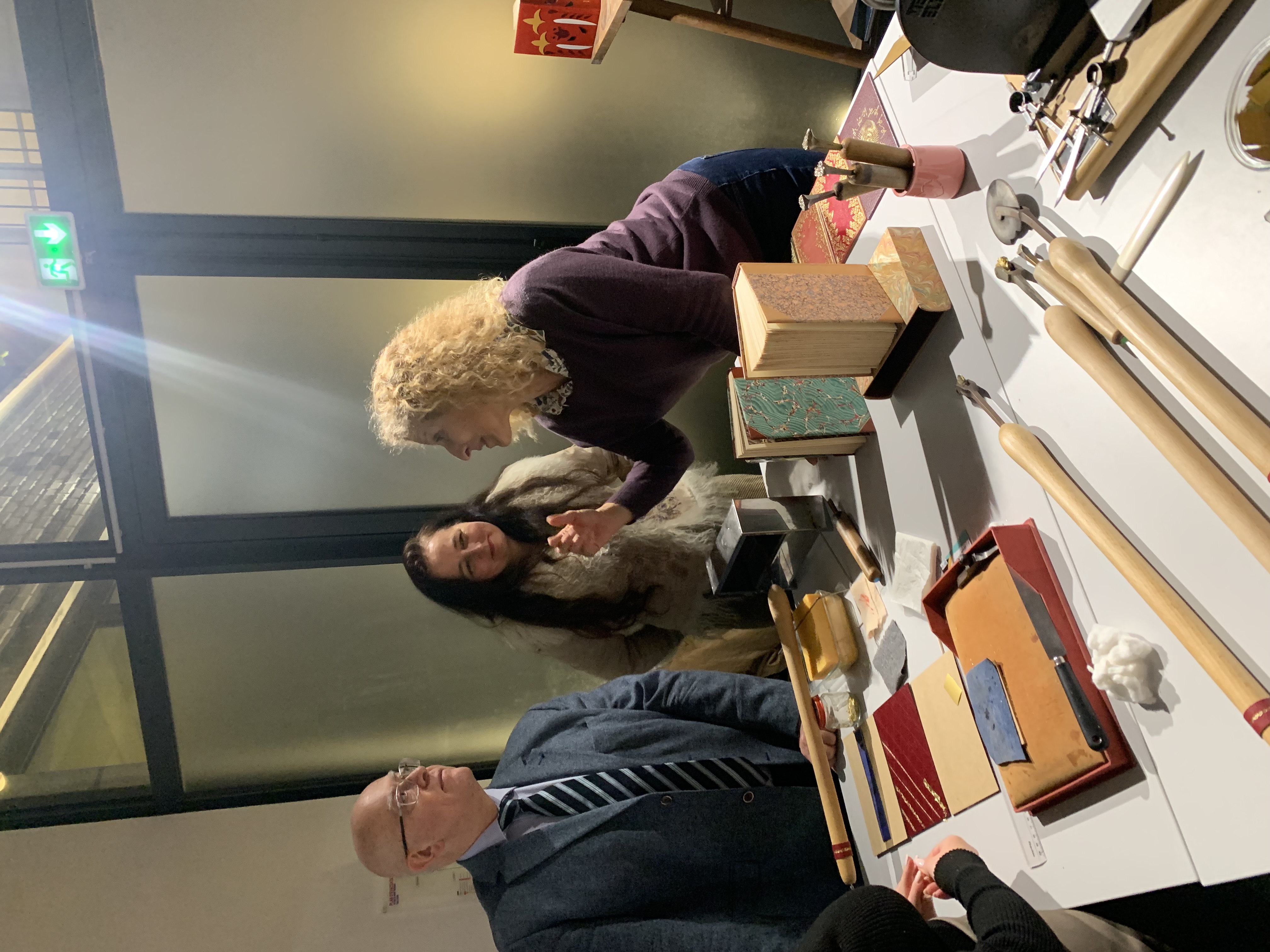 Ils animent un atelier regroupant un espace exposition des travaux de fin d'année du Brevet des Métiers d'Art " Art de la reliure et de la dorure" et un espace pratique de réalisation.