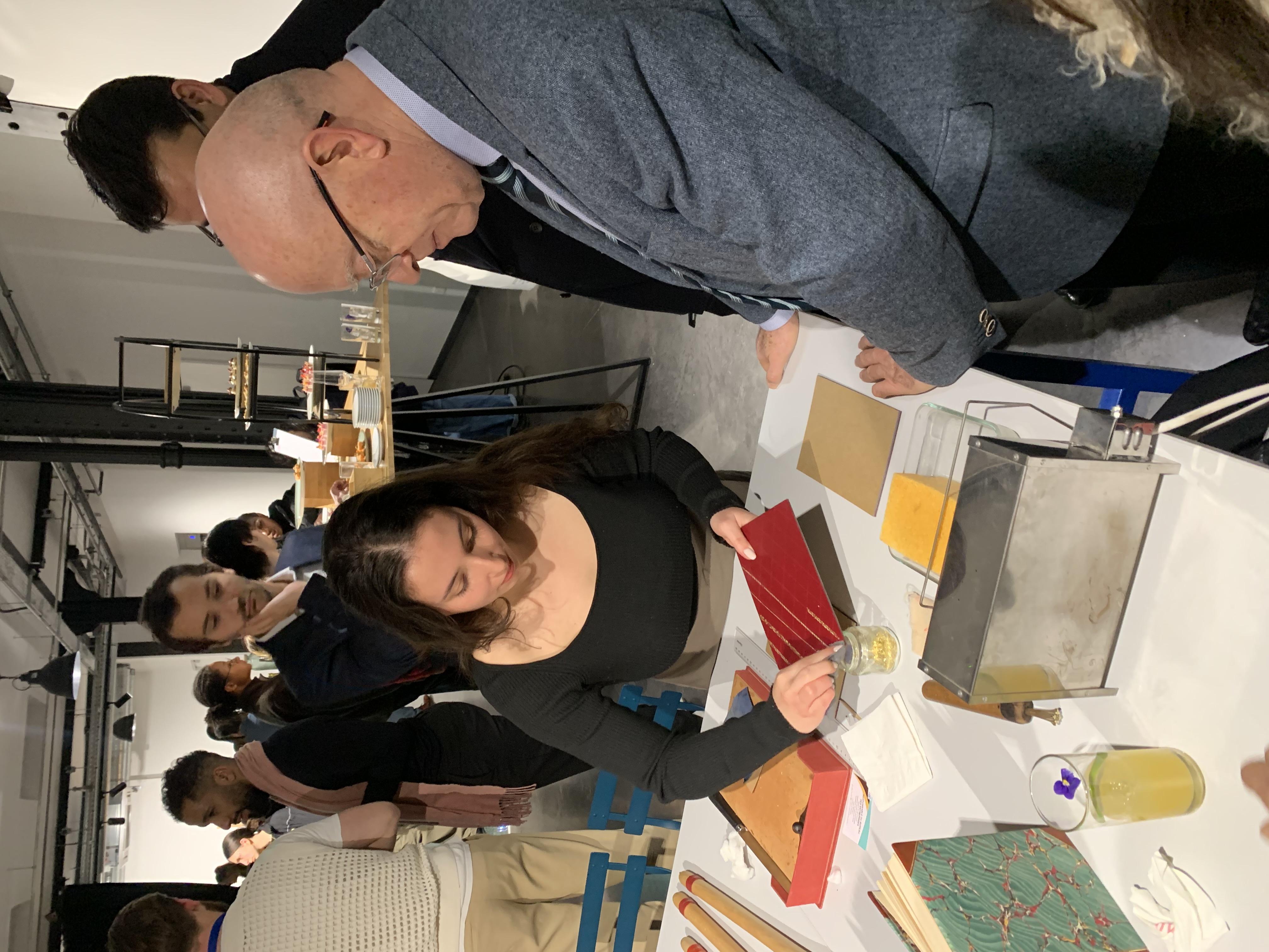 Les élèves du Certificat de Spécialisation "Arts de la Dorure à chaud" du lycée Corvisart Tolbiac participent à la soirée d'inauguration du STUDIO 38.