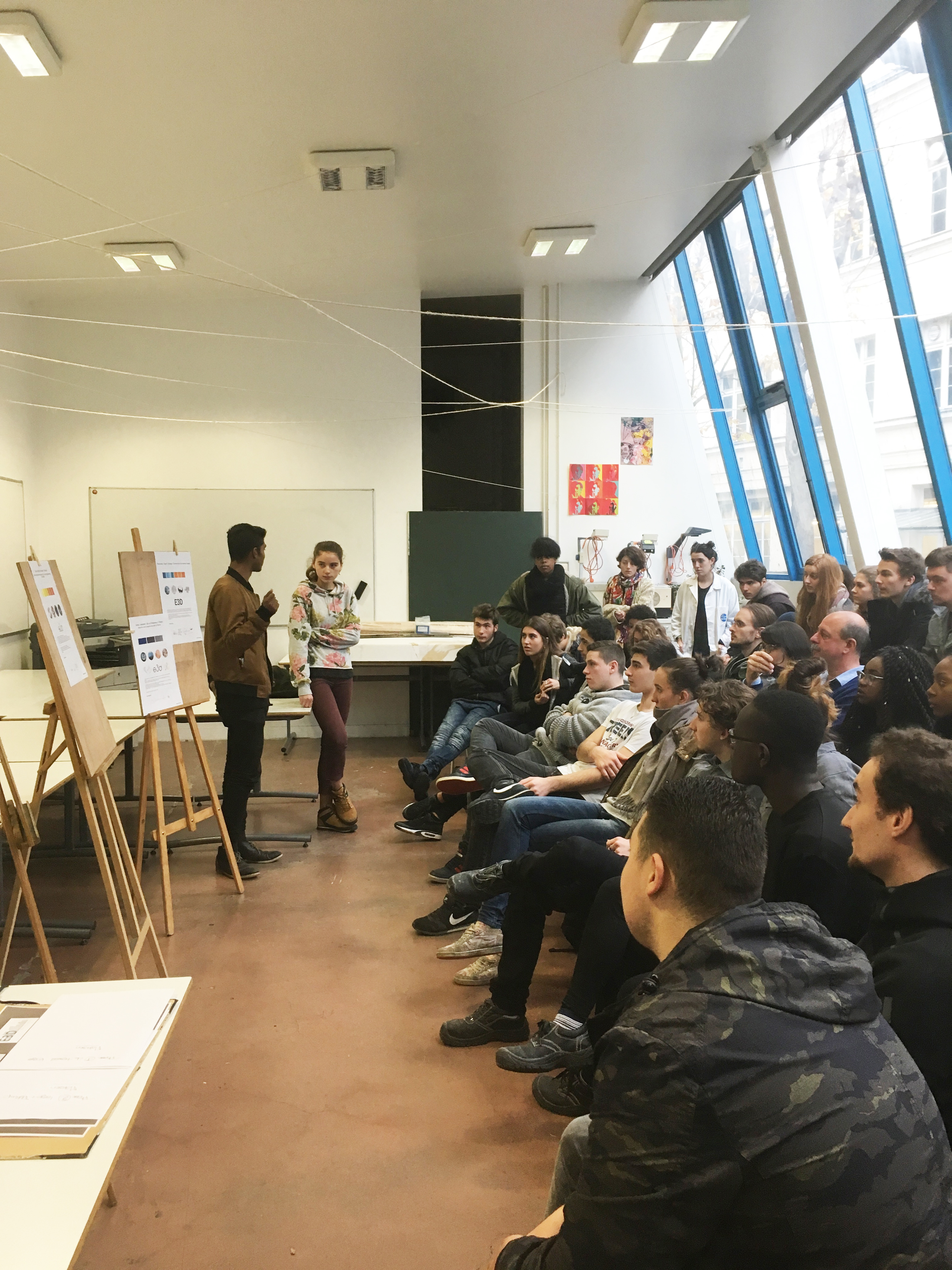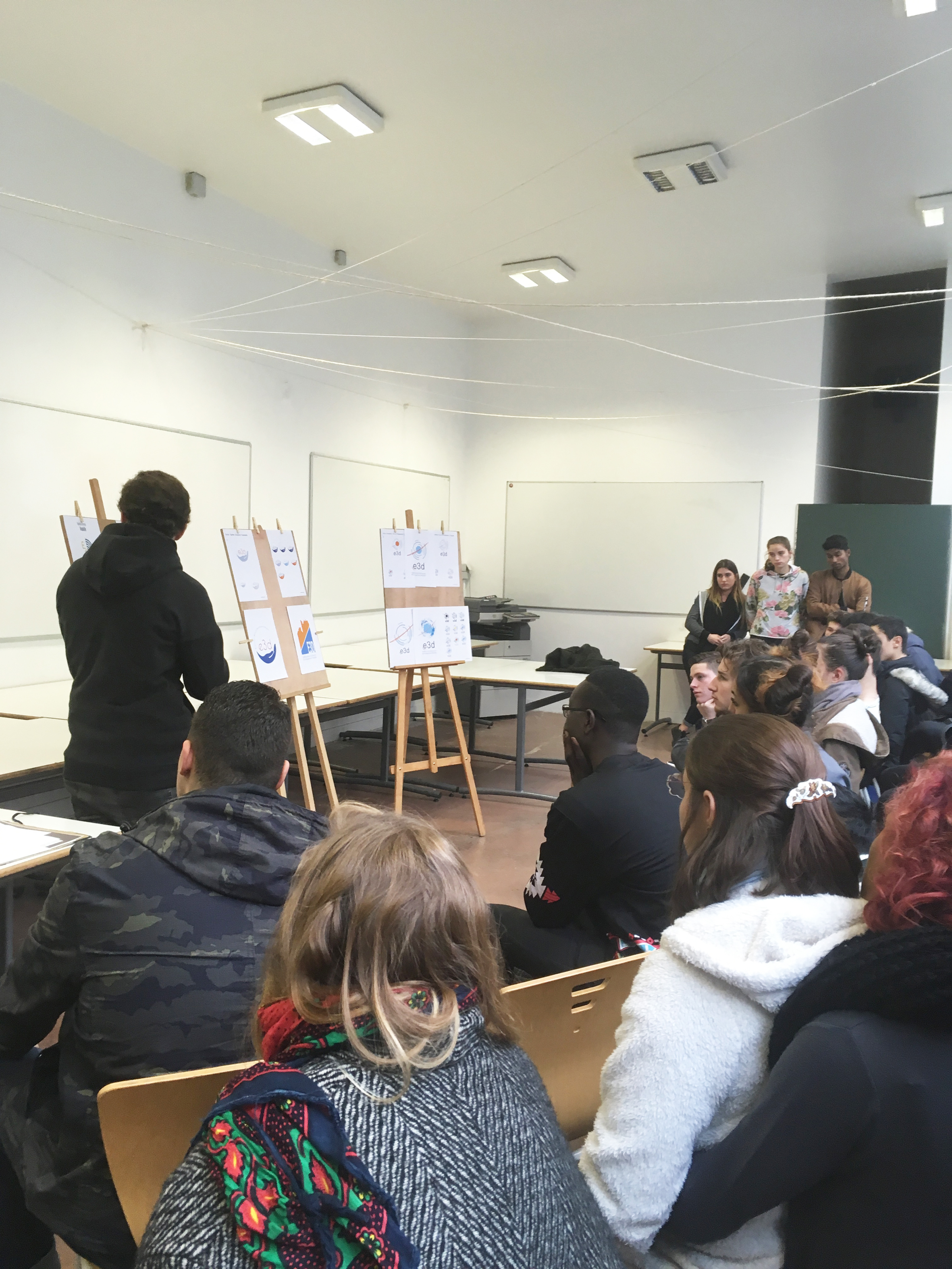 - Un premier jury s'est réuni pour ne garder plus que 2 candidats sur 8 pré-séléctionnés. Les élèves ont argumenté leurs recherches et aboutissements.