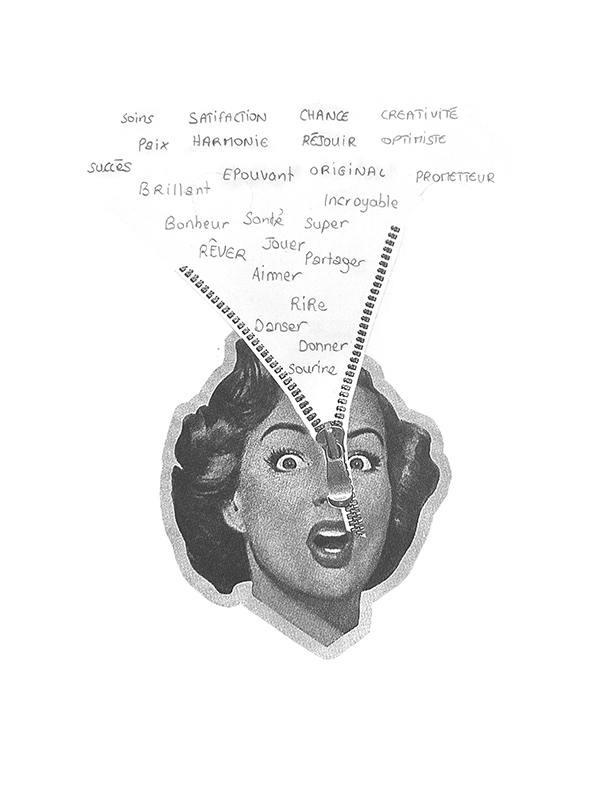 De retour en classe, les élèves ont déterminé dans une séance collective de "brainstorming" ce qu'est le progrès aujourd'hui, pour eux. Une liste a été établie : la lutte contre le réchauffement climatique, contre les violences domestiques, contre la pollution, contre la fermeture d'esprit, … Puis, chaque élève a inventé une "bonne chose" surréaliste ayant la fonction de lutter contre l'un de ces items. Pour donner forme à leurs créations, les élèves ont expérimenté le collage surréaliste.